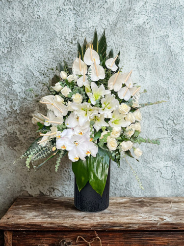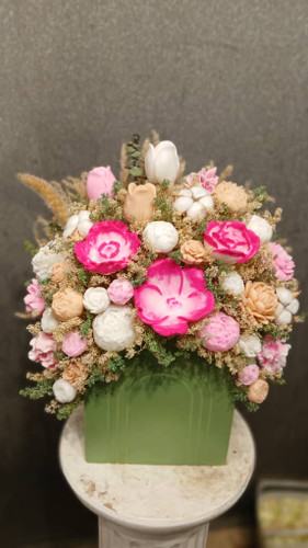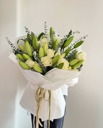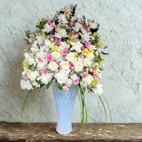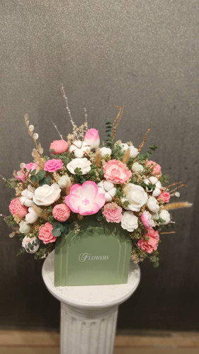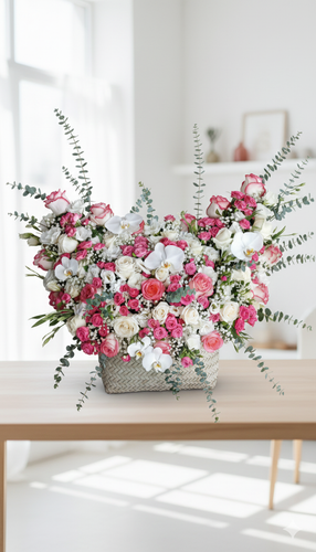 سبد گل لاکچری رز صورتی و لیلیوم مدل آریانا